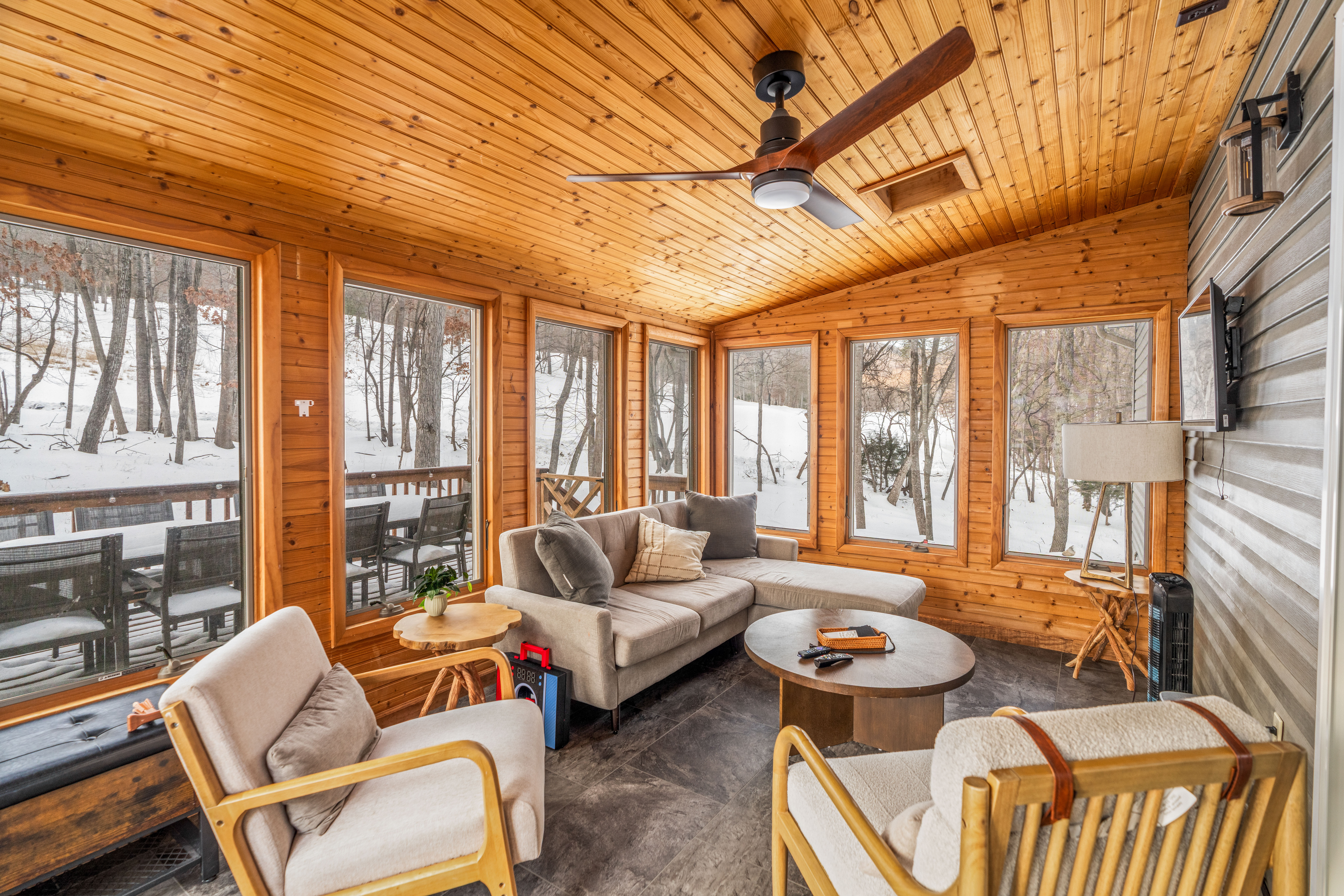 Welcome to Stone's Throw Retreat, a designer-decorated home in the heart of Massanutten, located just across the street from Painter's Pond. Indulge in the brand new hot tub, cedar barrel sauna, fire table area, outdoor TV, and dining for 10. Inside, you'll love the vaulted ceiling with exposed beams, a lovely sunroom, and the decked out game room. With 6 bedrooms, the home sleeps 16 comfortably. Managed by Chris at New School Hosting- click on my profile for more reviews. Also, pet friendly!
